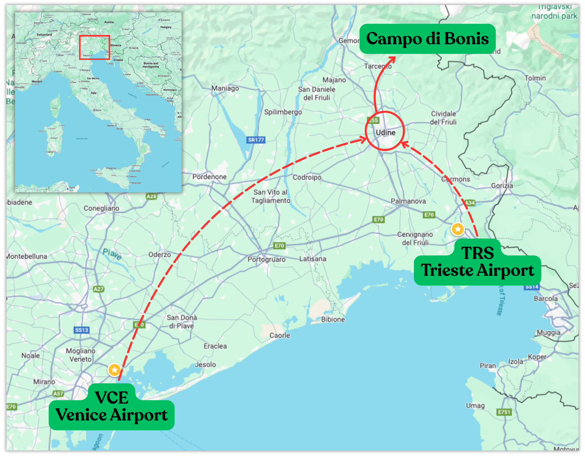 - Group transfers from Udine to Campo di Bonis